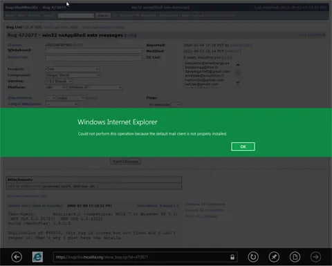 • Bug 686836 - Launching default email client in Windows 8 results in error