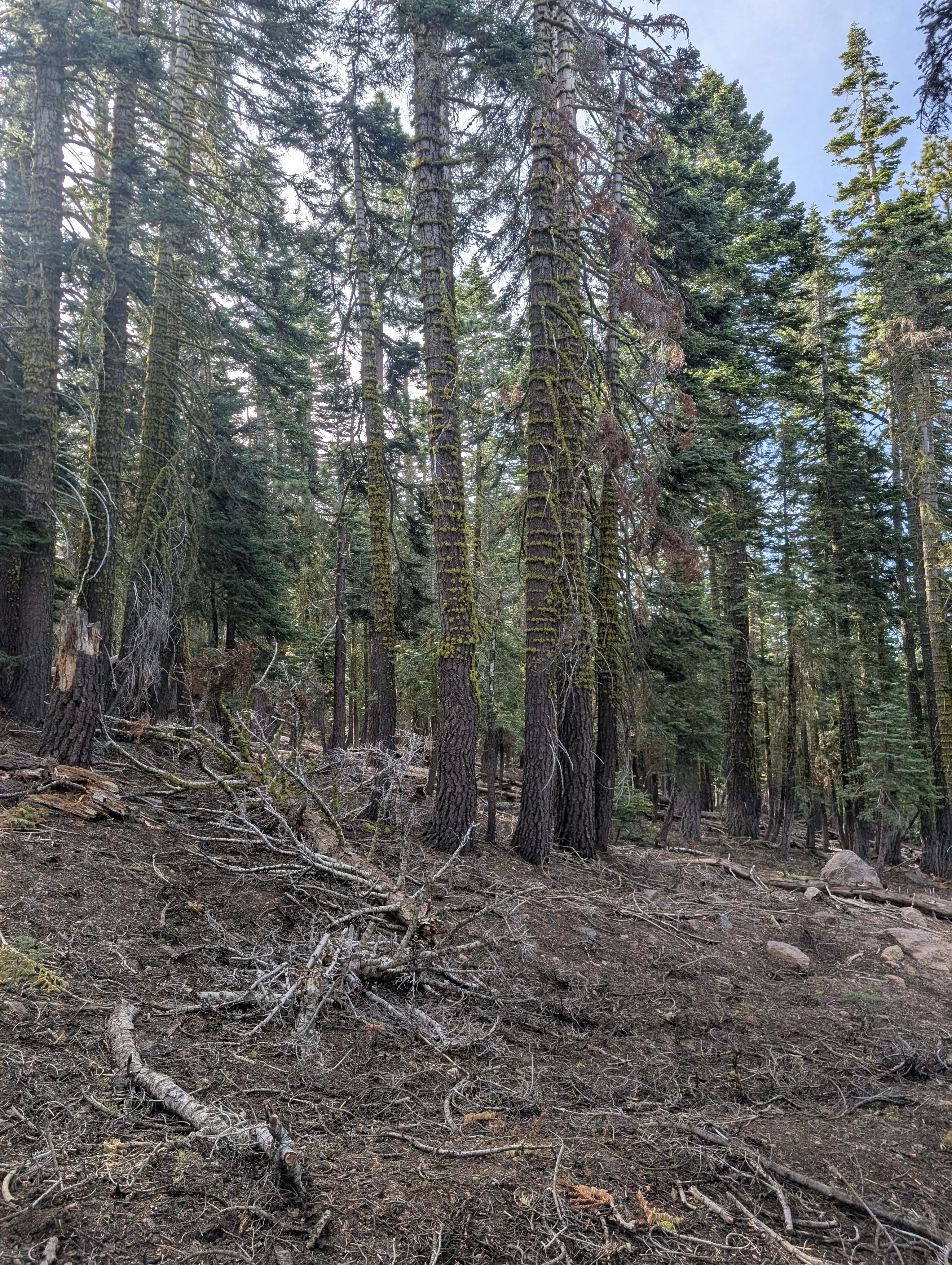 Along the trail, a strange green lichen clung to everythingâtrees, rocks, even the forest floor. The deeper into the race I went, the more it seemed to cover the entire landscape. Some runners believed it caused “Tahoe Lung,” but I looked into it afterwardâthat’s probably not true. The dust, the dry air, the altitude were the real culprits. But I couldn’t shake the feeling that the lichen was part of it. Like it had gotten into my lungs, into my thoughts. Steadily driving my sleep deprived mind mad.